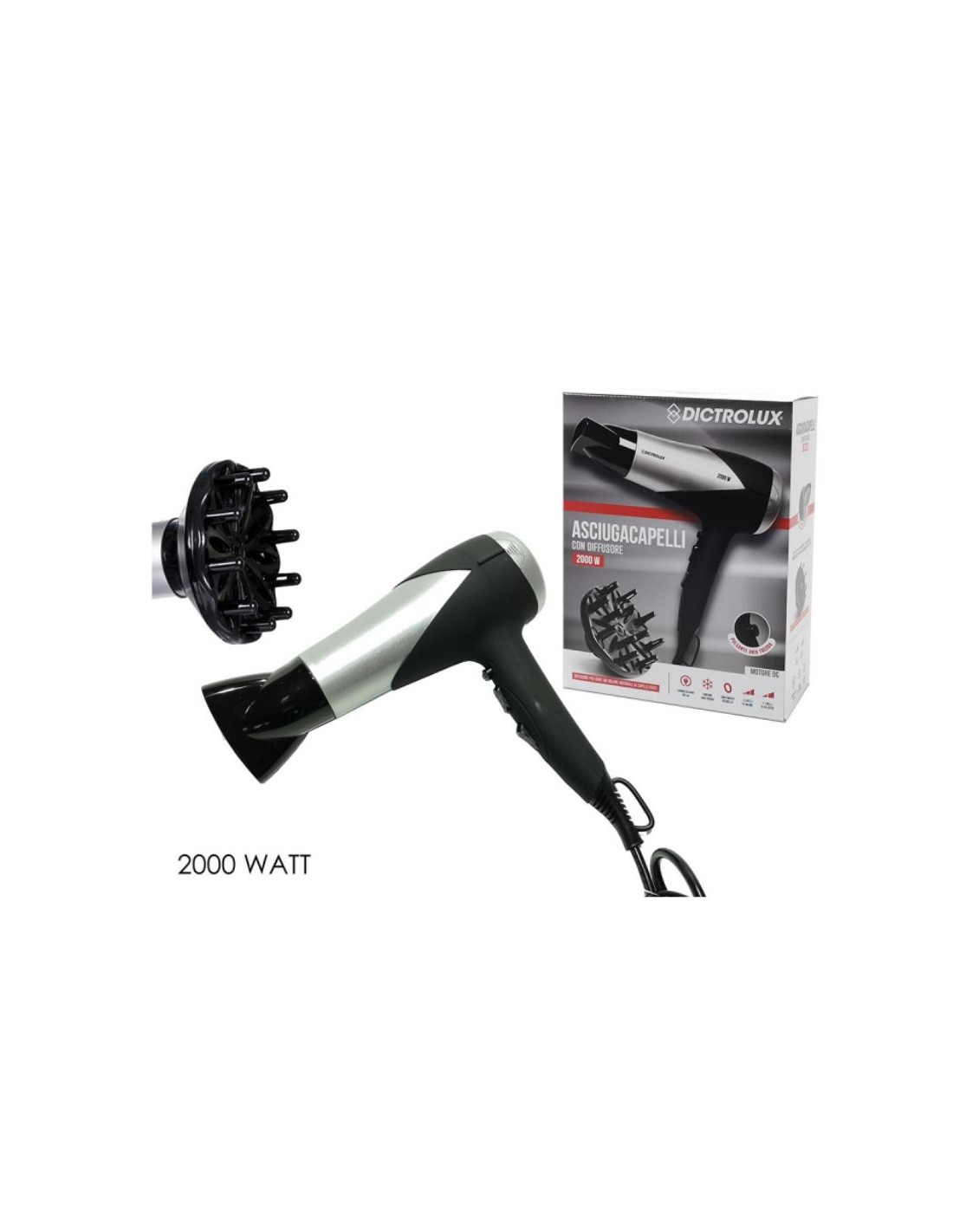 Phon gommato nero 2000w con diffusore