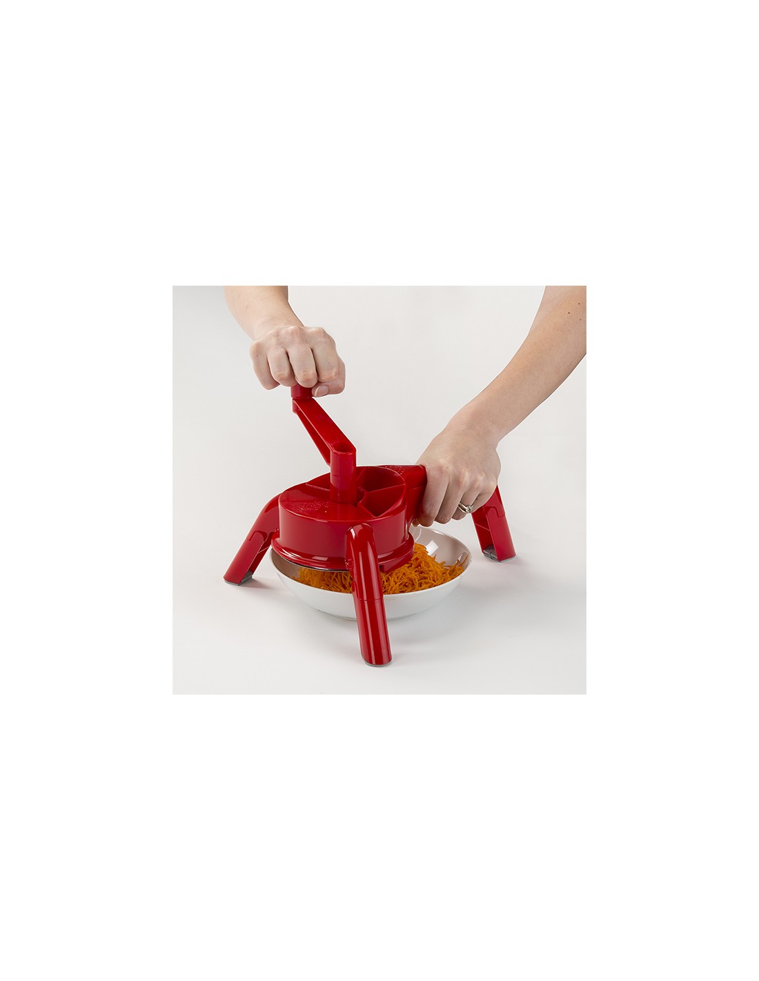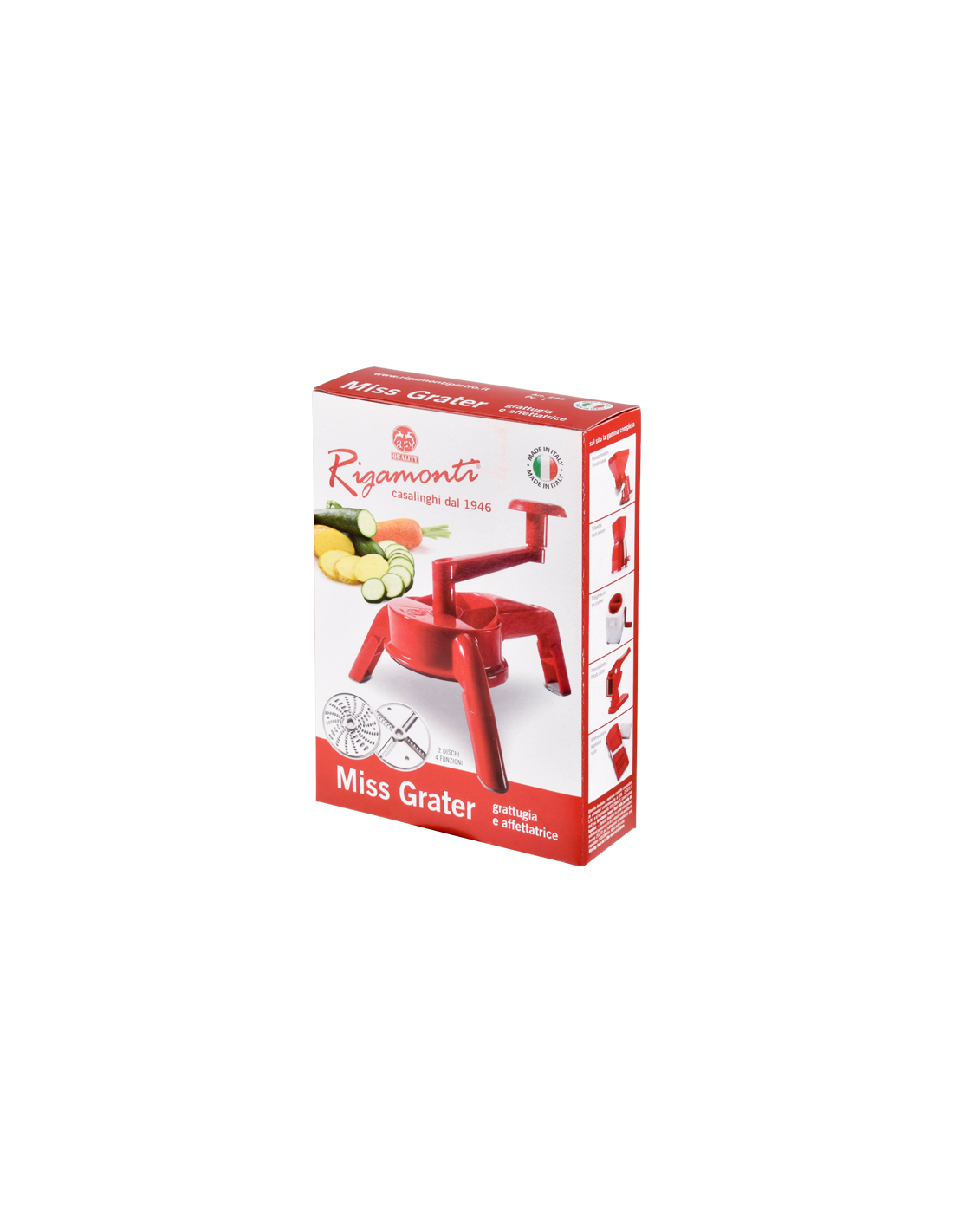 Dotata di due dischi per quattro diverse operazioni. Piedini ripiegabili completi di gommini antiscivolo. Lavabile in lavastoviglie.